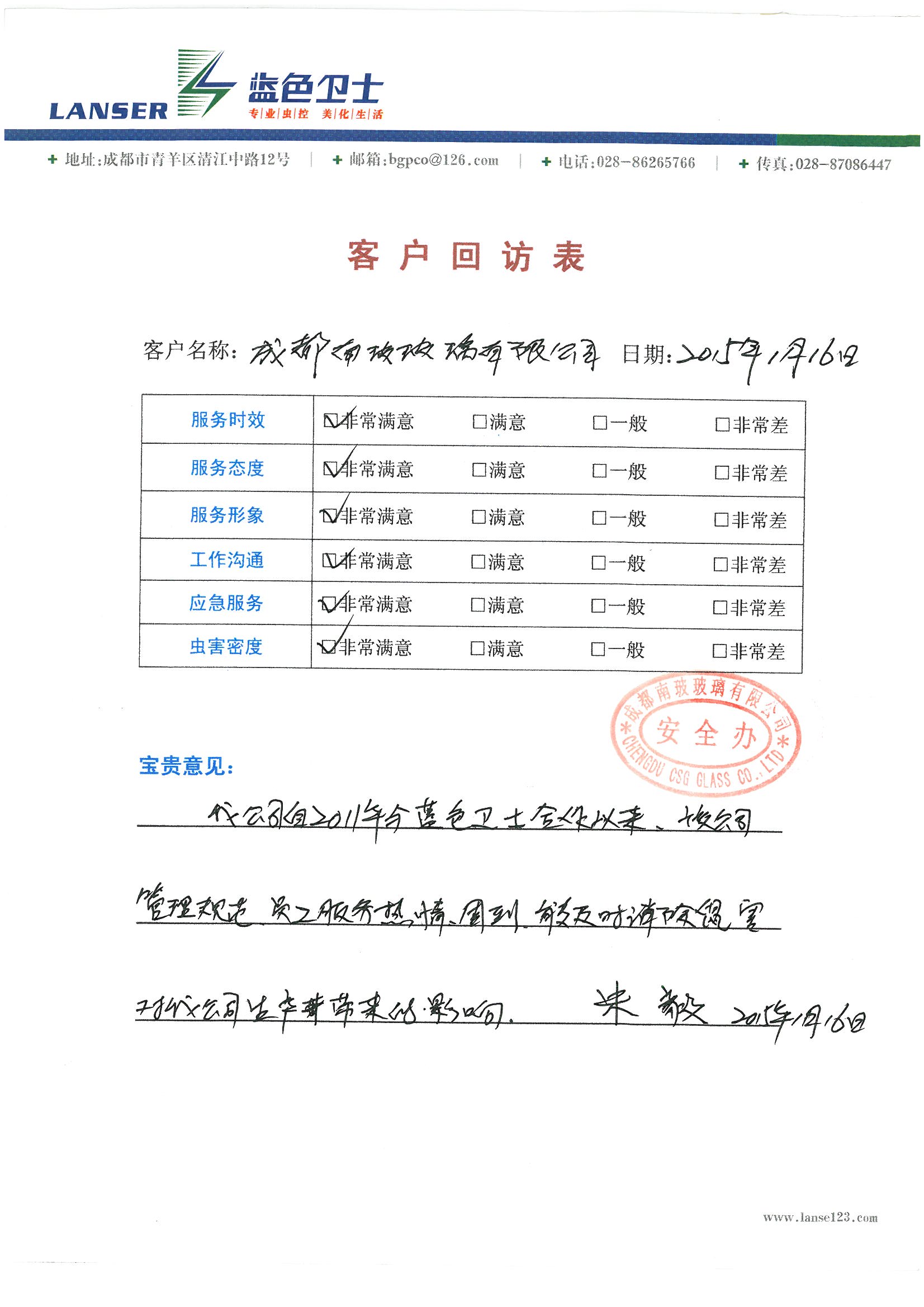 南玻玻璃對(duì)我公司服務(wù)質(zhì)量的評(píng)價(jià):
