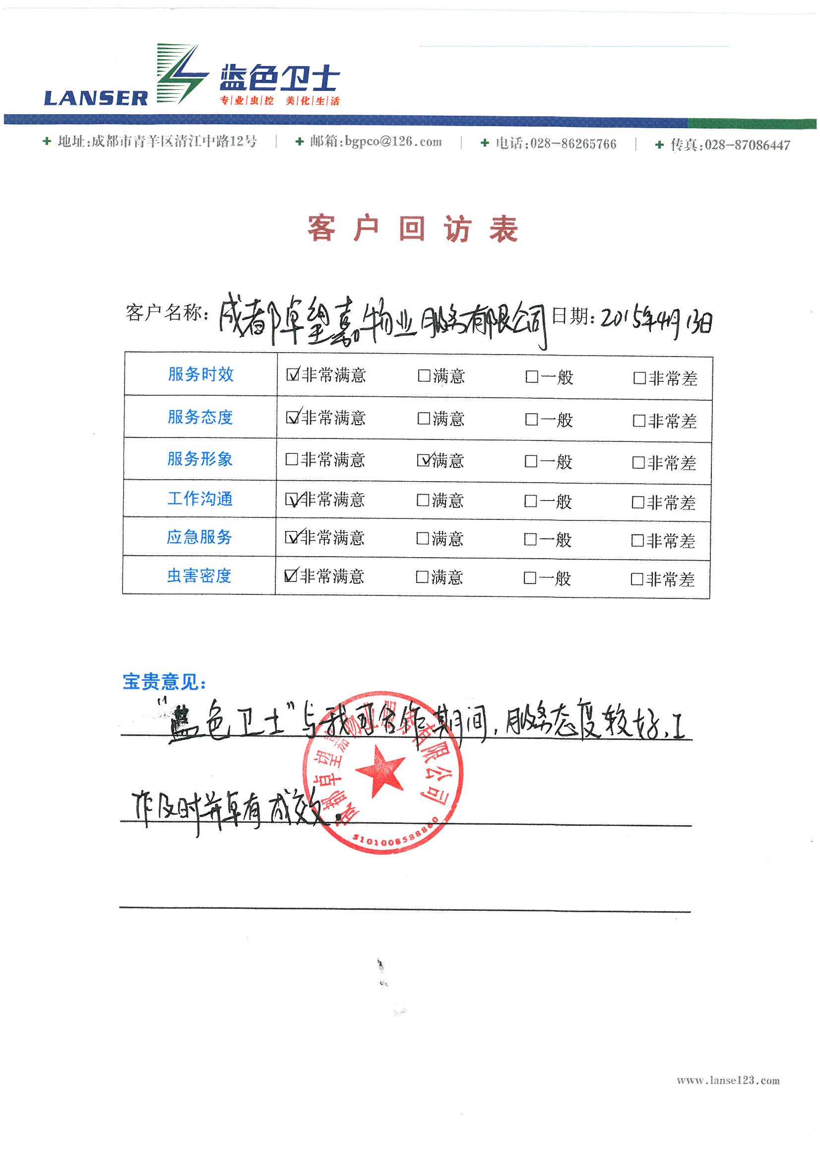 藍(lán)色衛(wèi)士與我司合作期間,服務(wù)態(tài)度較好,工作及時(shí)并卓有成效!